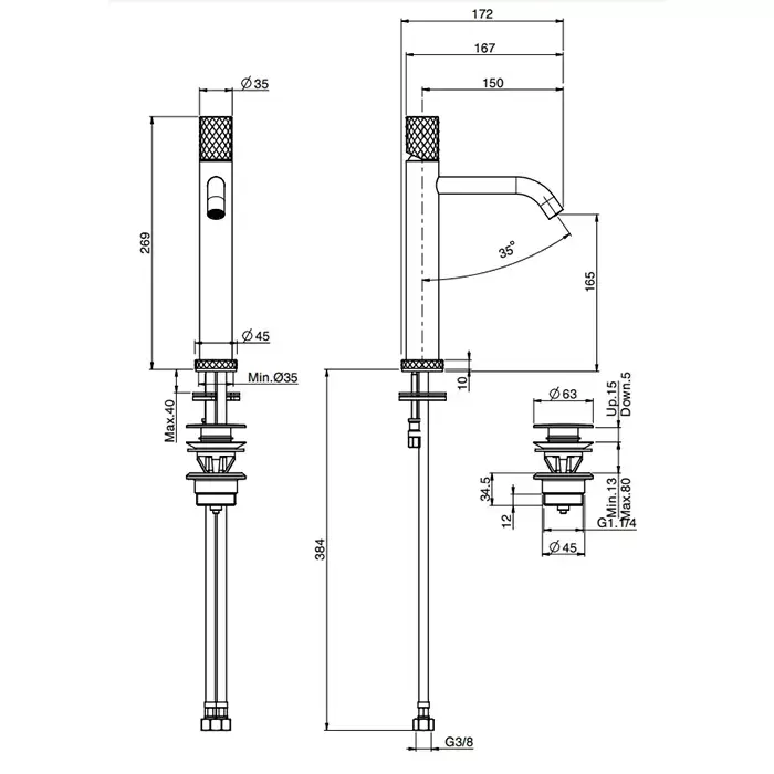 Fima Carlo Frattini Spillo Tech Смеситель для раковины, на 1 отв., высокий, XS, с донным клапаном, цвет: хром