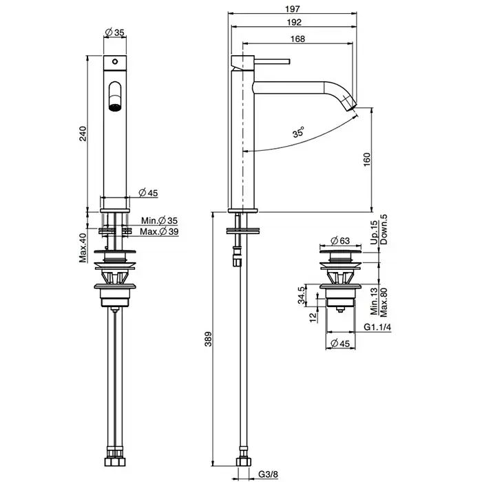 Fima Carlo Frattini Spillo Up Cмеситель для раковины, на 1 отв., высокий, XS, с донным клапаном, цвет: золото