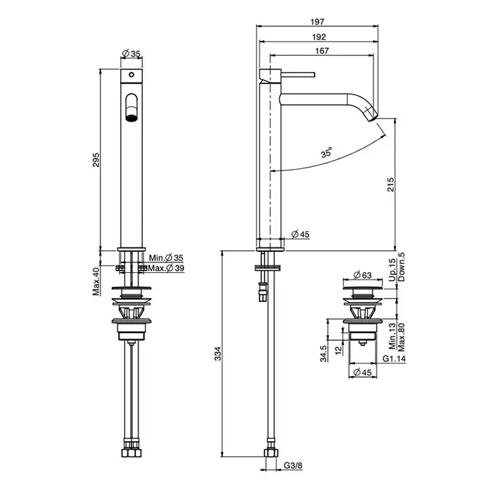 Fima Carlo Frattini Spillo Up Смеситель для раковины, на 1 отв., высокий, XS, с донным клапаном, цвет: черный матовый
