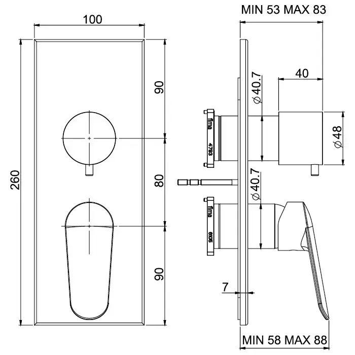 Fima Carlo Frattini Spot F3009X6NS Встраиваемый смеситель на 2/3 источника, металлическая пластина, внешняя часть, цвет: чёрный матовый