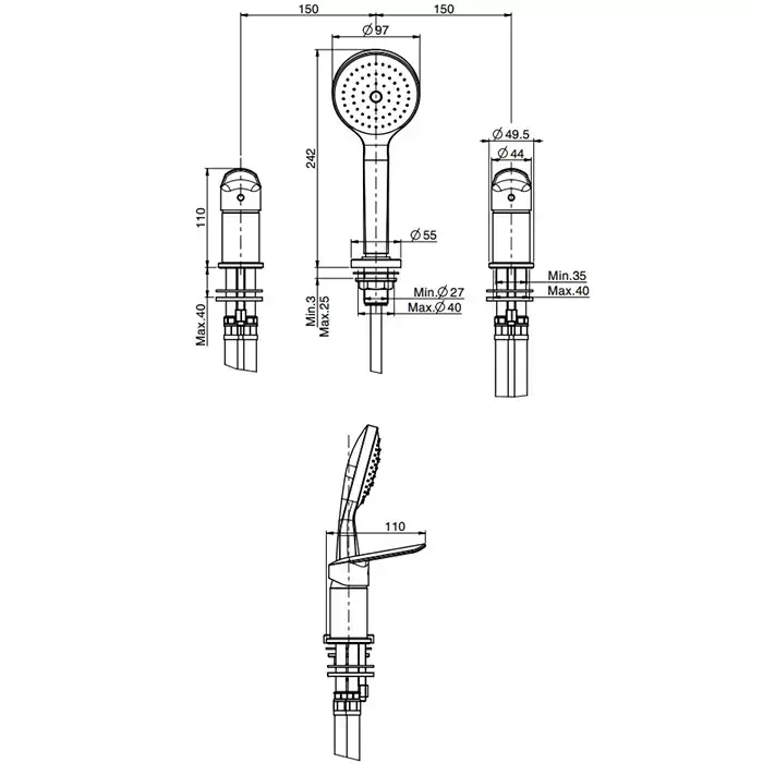 Fima Carlo Frattini Spot Смеситель на борт ванны, на 3 отв., с ручным душем, цвет: хром