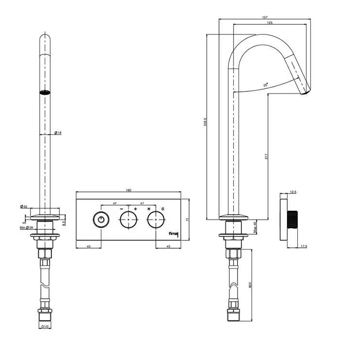 Fima Carlo Frattini Switch ON Смеситель для раковины, встраиваемый, изливом на 1 отв., цвет: хром