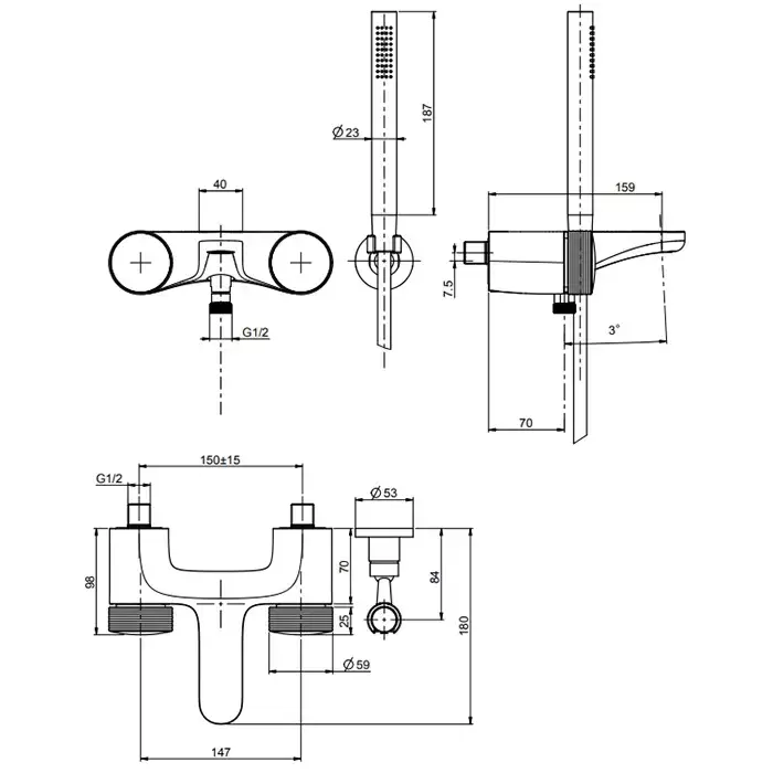 Fima Carlo Frattini Texture Collection Смеситель для ванны, настенный, с ручным душем, цвет: черный матовый