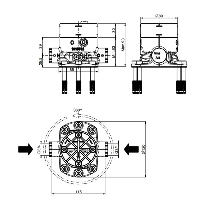 Fima Carlo Frattini Внутренняя часть напольного смесителя для ванны