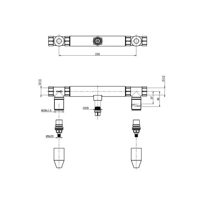 FIMA Carlo Frattini Внутренняя часть настенного смесителя для раковины, на 3 отверстия; (F2240)