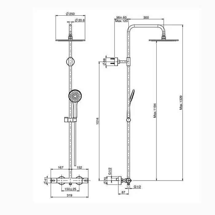Fima Carlo Frattini Wellness Душевая стойка с однорычажным смесителем: верхним душем и ручным душем, цвет: Хром
