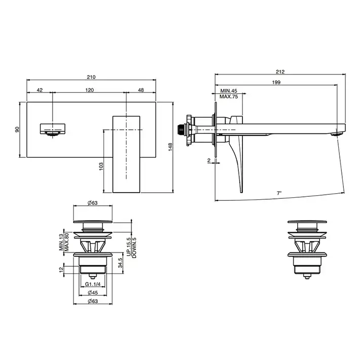 Fima Carlo Frattini Zeta Cмеситель для раковины, встраиваемый, излив: 20см., цвет: хром