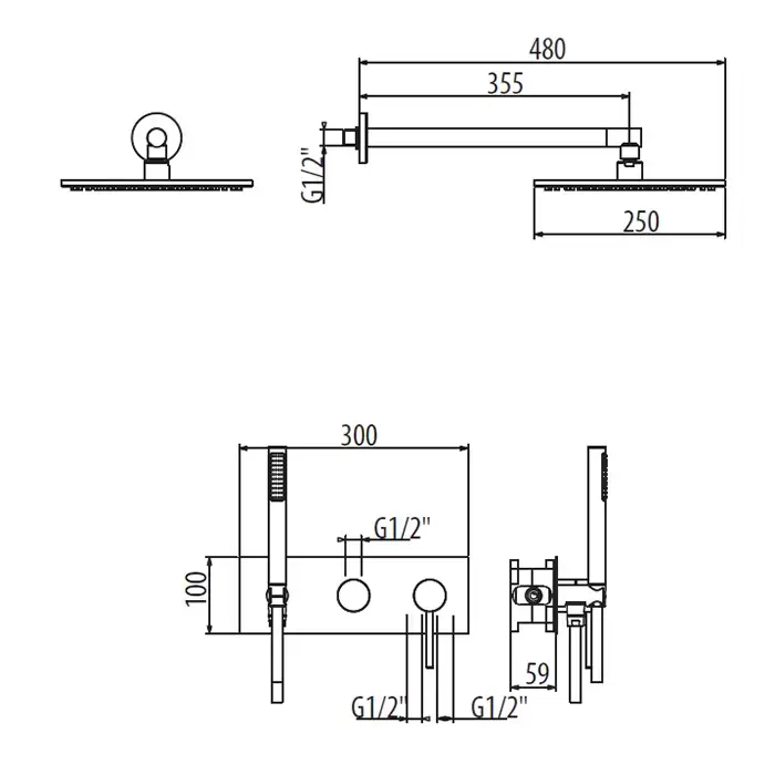 Gattoni Circle One Комплект для душа, со смесителем на 2 вых, ручной лейкой и верхним душем 25см, цвет: черный матовый