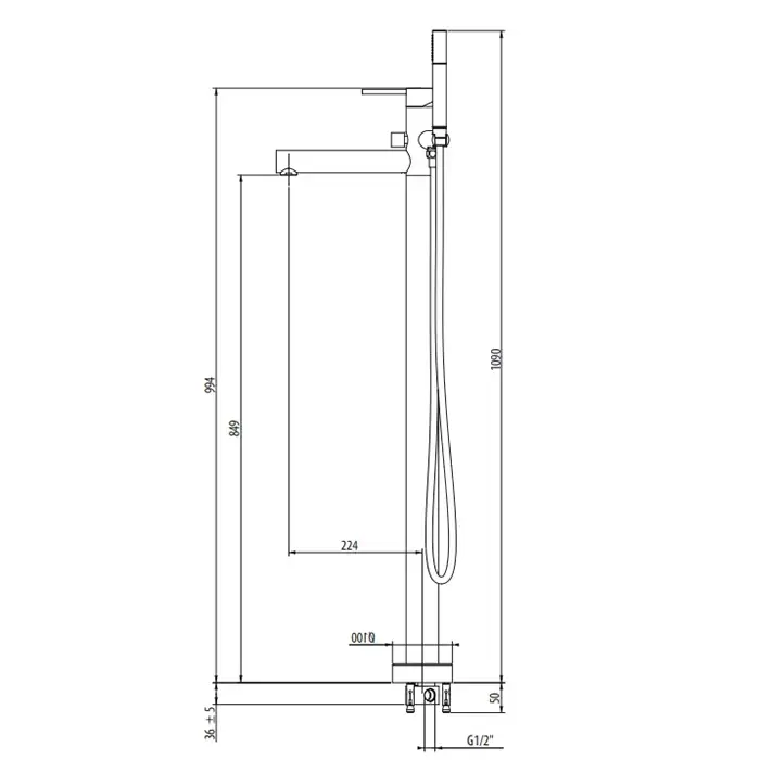 Gattoni Circle One Смеситель для ванны, напольный h1090 мм, с ручной лейкой, излив 224 мм, цвет: хром