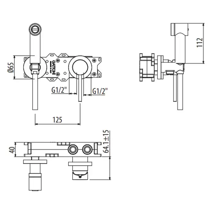 GATTONI CIRCLE TWO Гигиенический душ, с внутренней частью Gbox SC070, цвет NERO OPACO