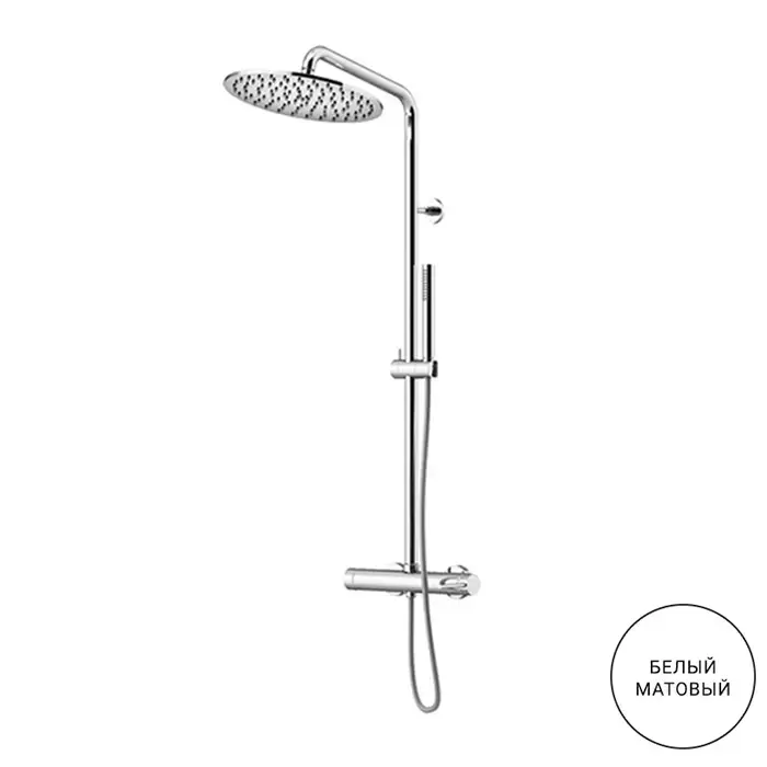 Gattoni Circle Two Комплект для душа: монокомандный смеситель, душевая стойка, душевая лейка 250мм, ручной душ, цвет белый матовый