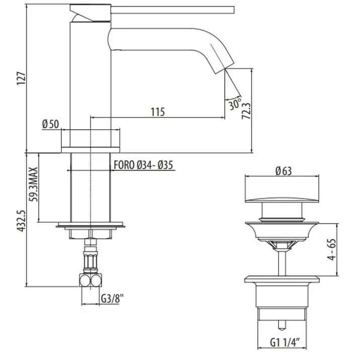Gattoni Circle Two Смеситель для раковины, 1 отв., с донным клапаном, цвет: Nero Opaco