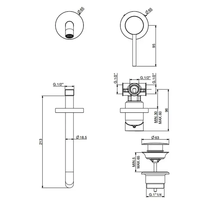 Gattoni Circle Two Смеситель для раковины встраиваемый, излив 208 мм, цвет: хром