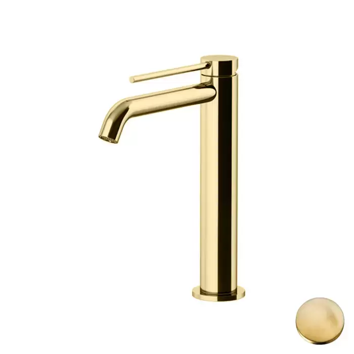 Gattoni Circle Two Смеситель для раковины высокий 227 мм, на 1 отверстие, излив 155 мм, с донным клапаном, цвет: Oro Brush