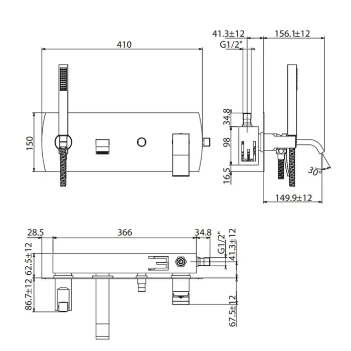 Gattoni ELY Смеситель для душа встраиваемый на основании с ручным душем, излив 149 мм, цвет: хром