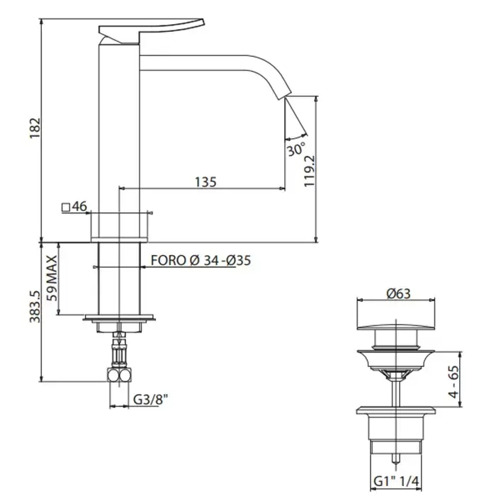 Gattoni ELY Смеситель для раковины H182мм, излив 135 мм, цвет: хром