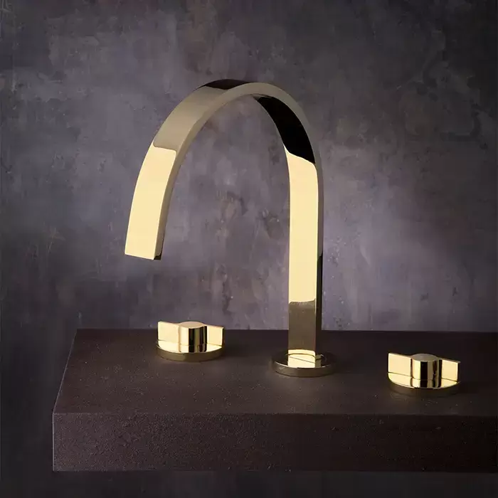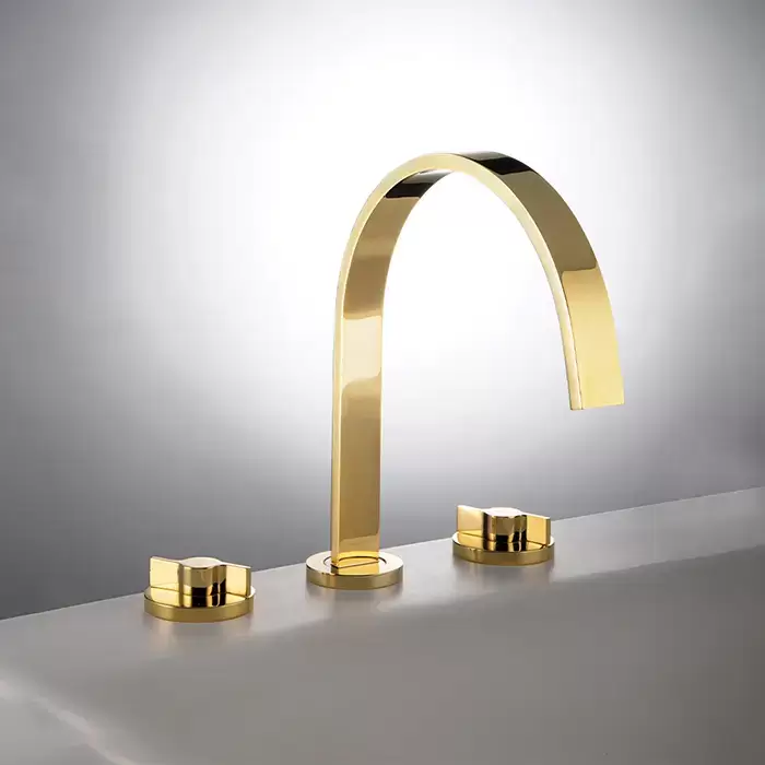 Gattoni GAS Смеситель для раковины, на 3 отв., в комплекте с донным клапаном, цвет: Gold 24KT