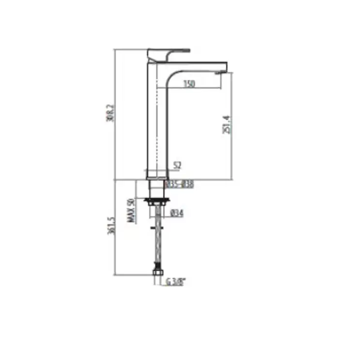 Gattoni H2Omix1000 Смеситель для раковины высокий, без донного клапана, цвет: хром