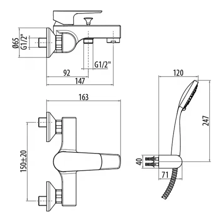 Gattoni H2omix3000 Смеситель для ванны с лейкой и шлангом, цвет: хром