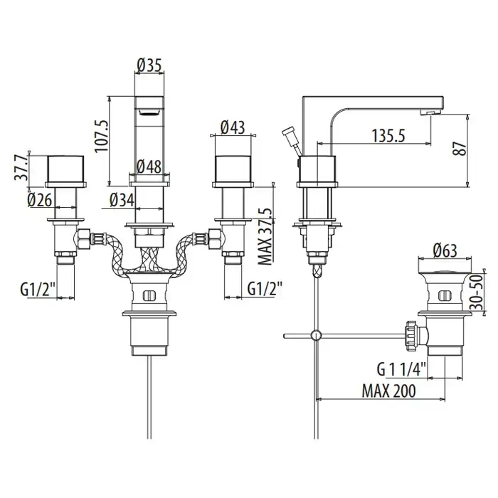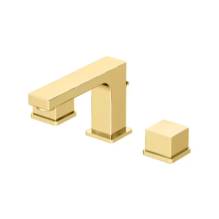 Gattoni Kubik Смеситель для раковины на 3 отв ,с донным клапаном, излив 135,5 мм, цвет: золото