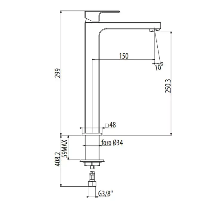 Gattoni Kubik Смеситель для раковины, высокий 299 мм, излив 150мм, цвет: черный матовый