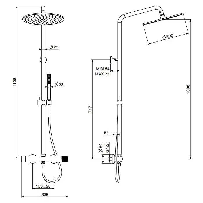 Gattoni MD Душевая стойка, верхний душ Ø300 мм., ручной душ, шланг, цвет: хром