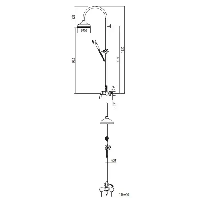 Gattoni Orta Душевая стойка, с верхнем душем 20см., со смесителем и ручным душем, цвет: хром