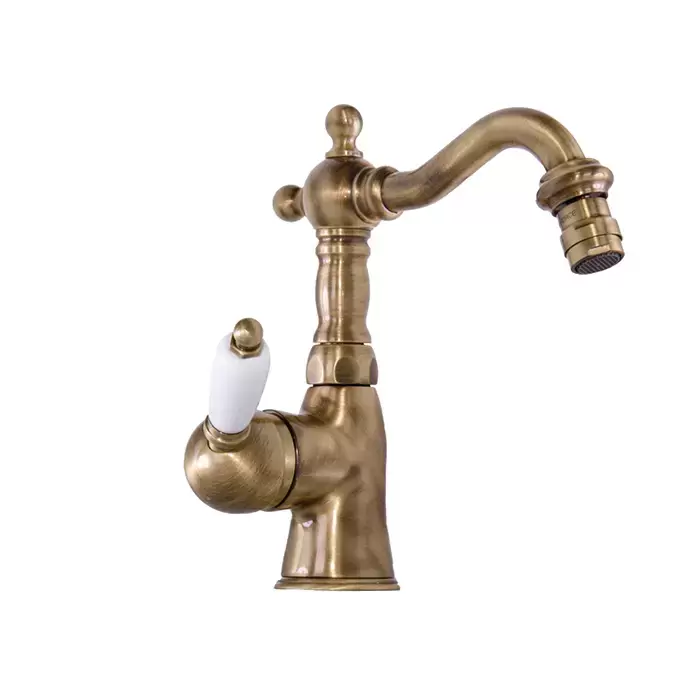 Gattoni Orta Смеситель для биде с высоким изливом, с белой ручкой, с донным клапаном, цвет: бронза