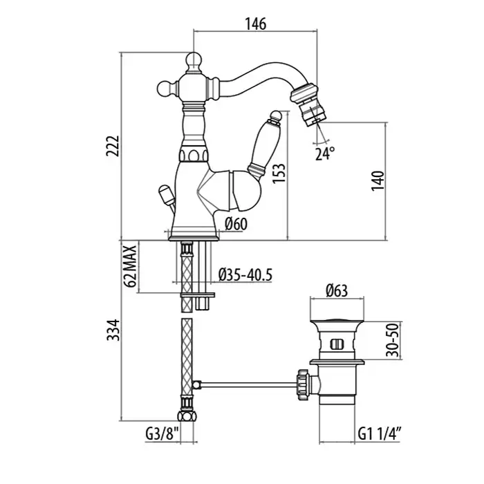 Gattoni Orta Смеситель для биде с высоким изливом, с белой ручкой, с донным клапаном, цвет: хром