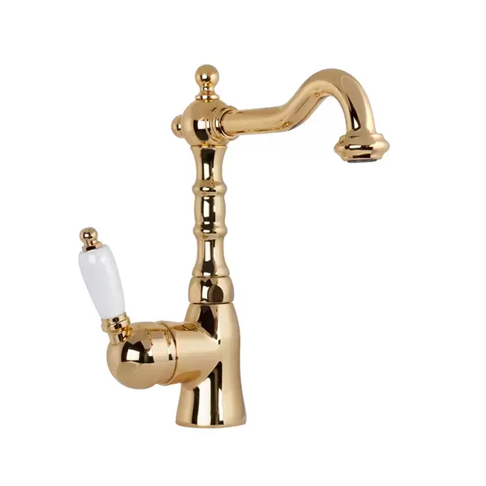 Gattoni Orta Смеситель для раковины с высоким изливом, с ручкой, с донным клапаном, цвет: золото 24к