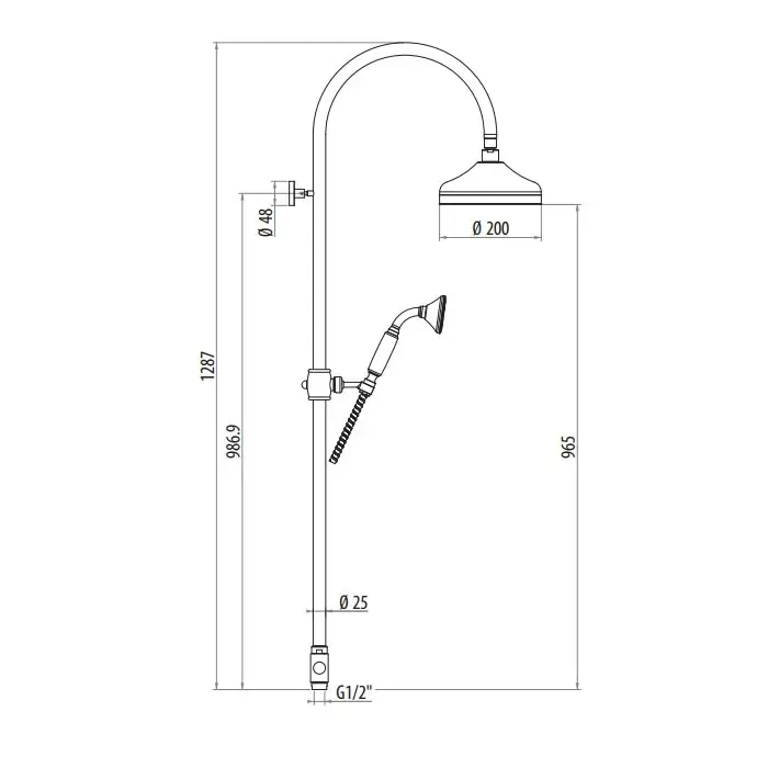 Gattoni PD Душевая колонка с верхним душем 200мм и ручной лейкой, цвет: золото 24кт