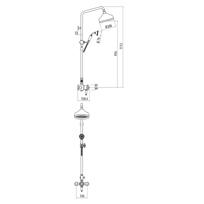 Gattoni PD Душевая стойка, с термостатом, ручным душем и верхней лейкой, диаметром 200 мм с "антикальцием", цвет: хром