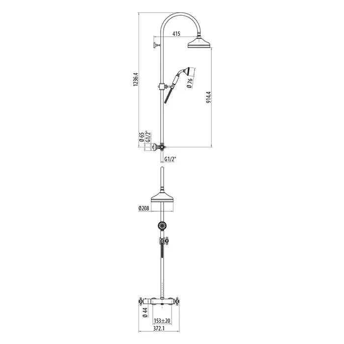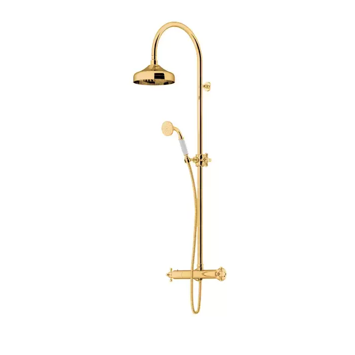 Gattoni PD Душевая стойка, с термостатом, ручным душем и верхней лейкой, диаметром 200 мм с "антикальцием", цвет: золото