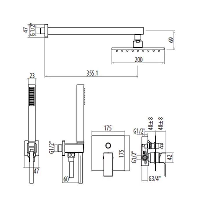Gattoni PD Набор для душа: душевая лейка c 1-м режимом, выпуск из стены- держатель душа, шланг 150см, цвет: белый матовый