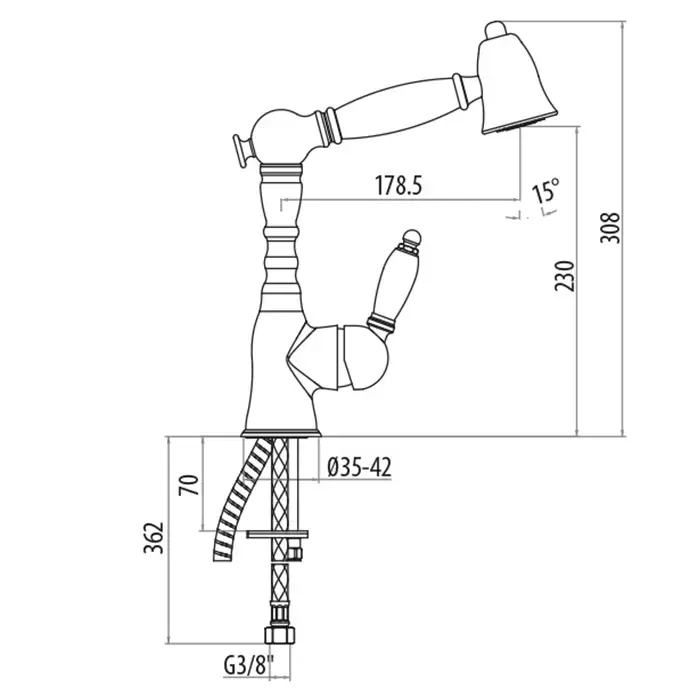Gattoni Retro Смеситель для мойки с выдвижным "ручным душем", цвет: золото