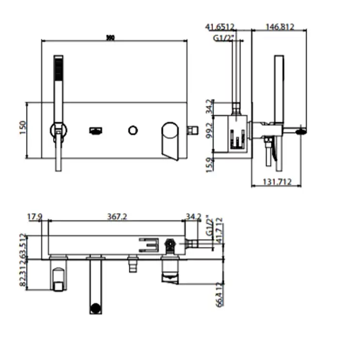 Gattoni Soffio Смеситель для ванны встроенный с внутренней частью. с ручной лейкой. цвет: хром