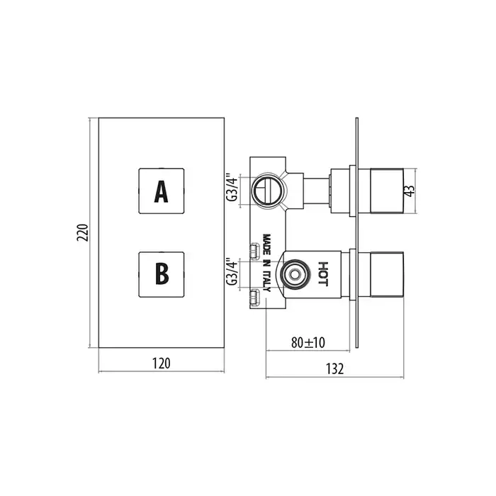 Gattoni Termostatici Термостатический смеситель для душа в современом стиле, на 2 выхода, цвет хром
