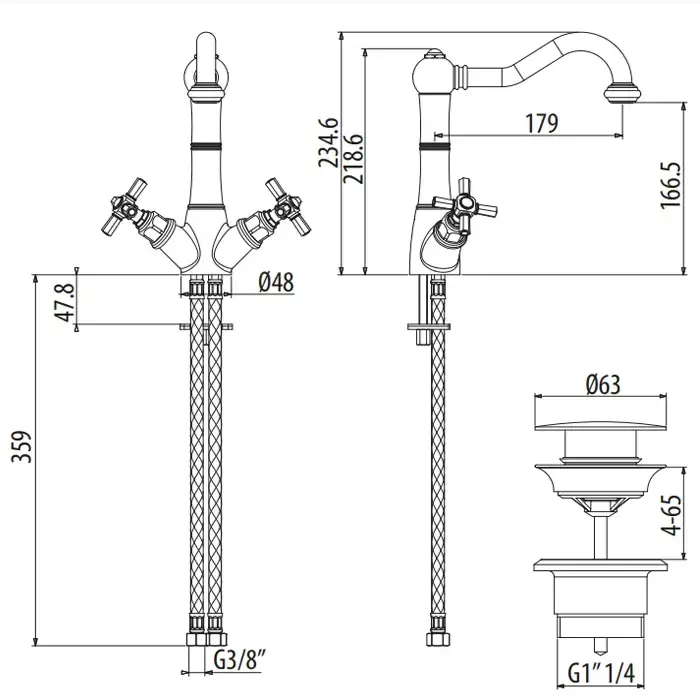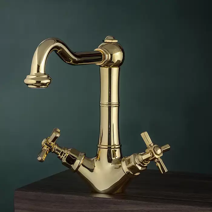 Gattoni TRD Смеситель для раковины, 1 отв., ручки Paris, цвет: золото 24К
