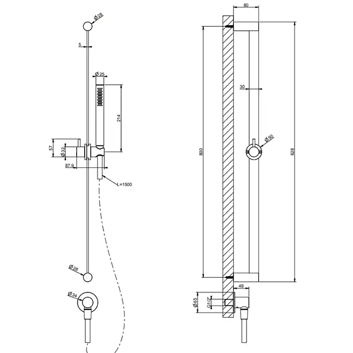 Gessi 316 Душевой гарнитур, штанга, с душевой лейкой с легкой очисткой, шланг 150см, вывод воды из стены, цвет: Black XL