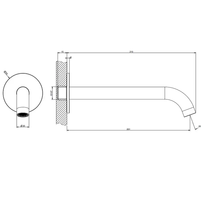 GESSI 316 Настенный излив 20см на 1/2”, комбинируемый с удаленным управлением (не входит в комплект), цвет: Brushed Brass PVD