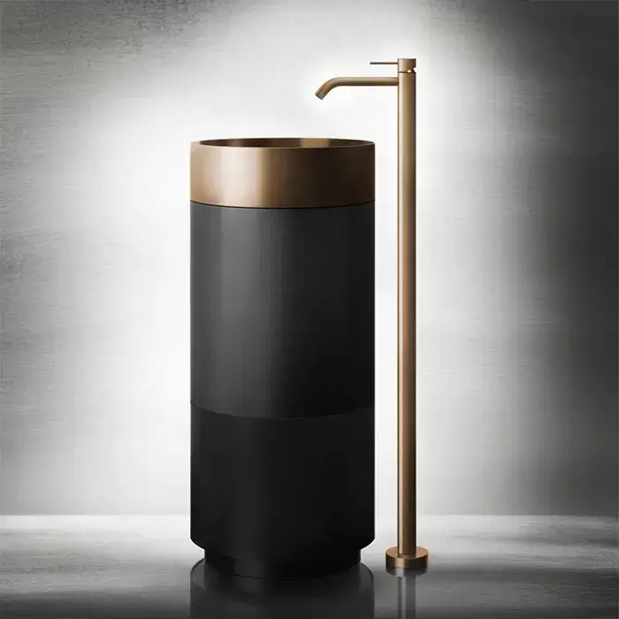 Gessi 316 Раковина 40x90 см, без отв., напольная, отдельностоящая, с сифоном, слив в пол, цвет: Warm bronze brushed PVD