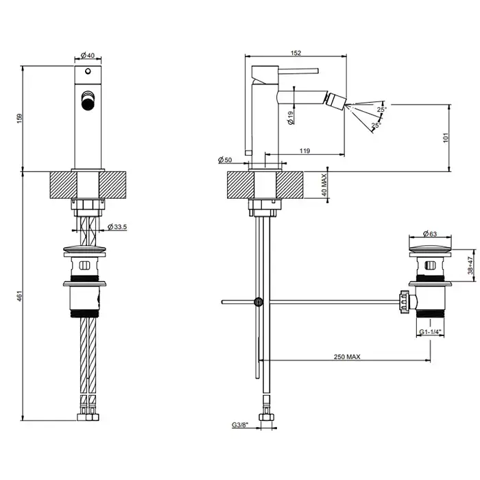 Gessi 316 Смеситель для биде на 1 отв. с донным клапаном, излив: 118мм, цвет: Black XL