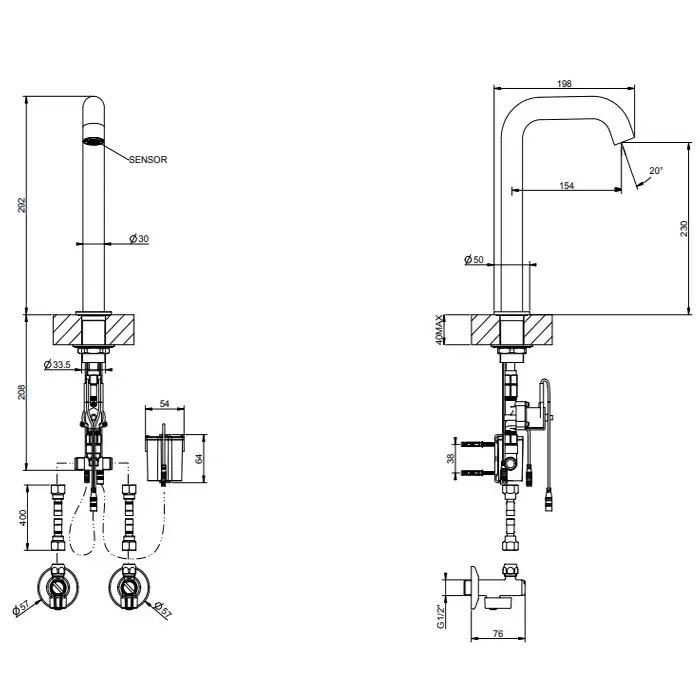 Gessi 316 Смеситель для раковины, 1 отв., электронный, с кран-фильтром для регулировки температуры и напора воды, цвет: Steel Brushed
