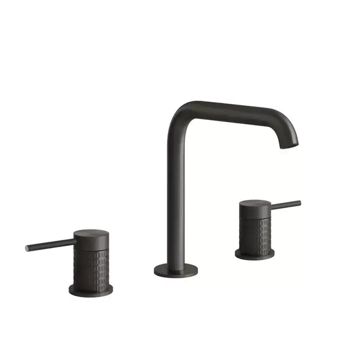 Gessi 316 Смеситель для раковины на 3 отверстия, без донного клапана, излив 156мм, h=201мм, цвет: brushed black metal pvd