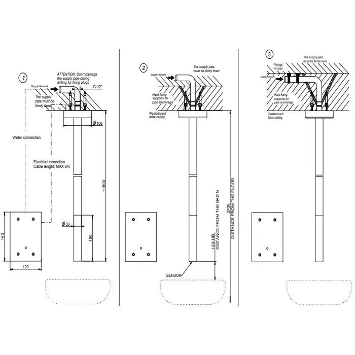 Gessi 316 Смеситель для раковины, потолочный, электронный, внешняя часть, цвет: Steel Brushed