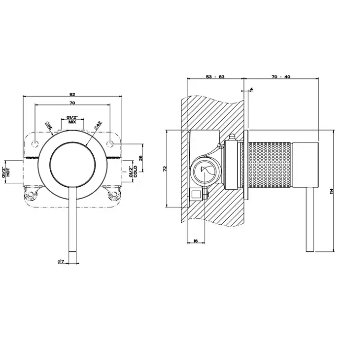 Gessi 316 Встраиваемый смеситель, на 1/2", на 1 источник, внешняя часть, цвет: brushed black metal pvd