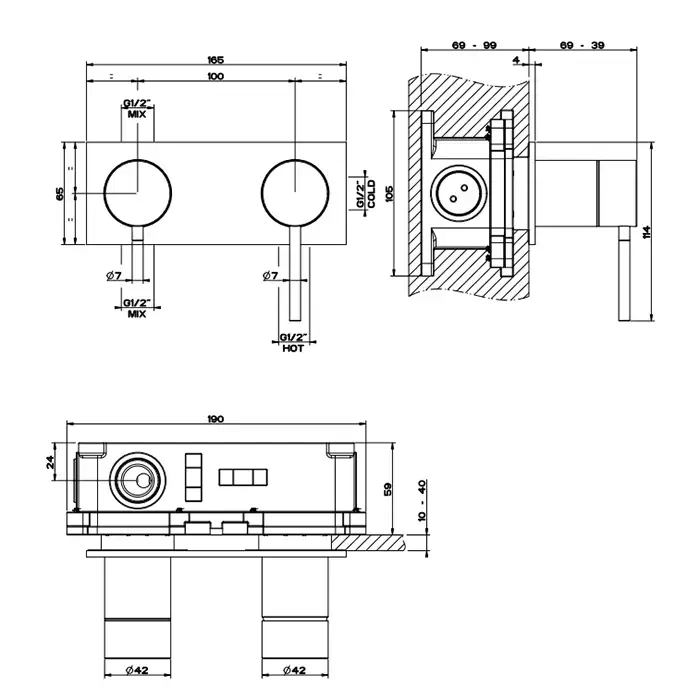 Gessi 316 Встраиваемый смеситель, на 2 источника с автоматическим переключателем, внешняя часть, цвет: brushed black metal pvd