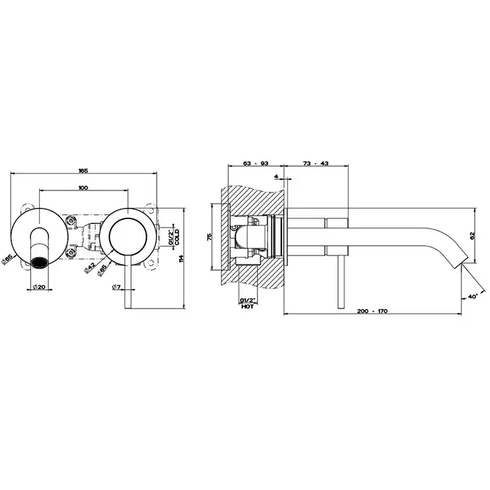 Gessi 316 Встраиваемый смеситель с изливом 200-170мм, внешняя часть, цвет: brushed black metal pvd