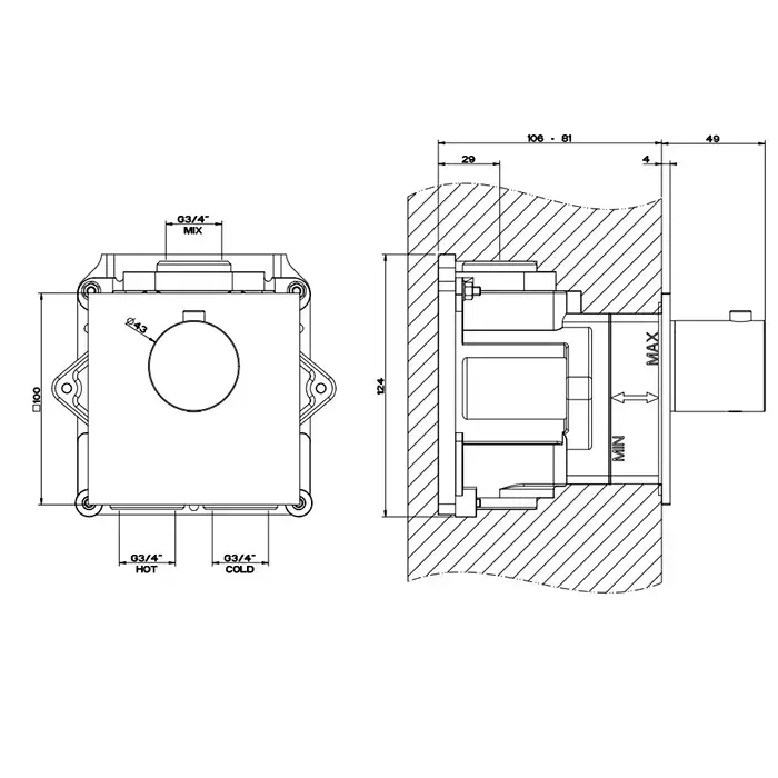 Gessi 316 Встраиваемый термостатический смеситель на 1 источник, резьба 3/4", внешняя часть, цвет: steel brushed