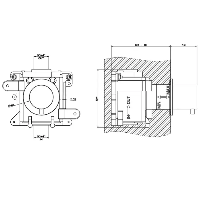 Gessi 316 Встраиваемый термостатический смеситель на 1 источник, резьба 3/4", внешняя часть, цвет: brushed black metal pvd
